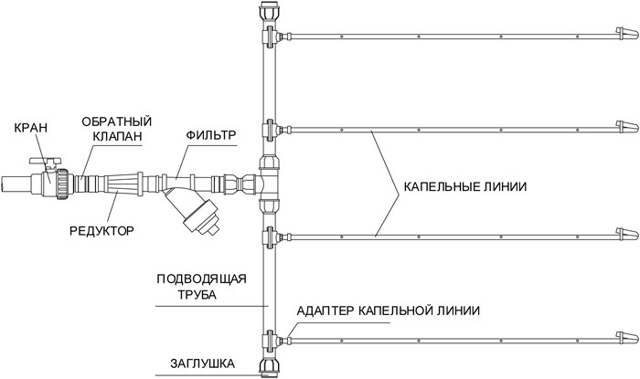 продумайте и отметьте на чертеже расположение магистрального и сочащихся шлангов, а также капельниц;