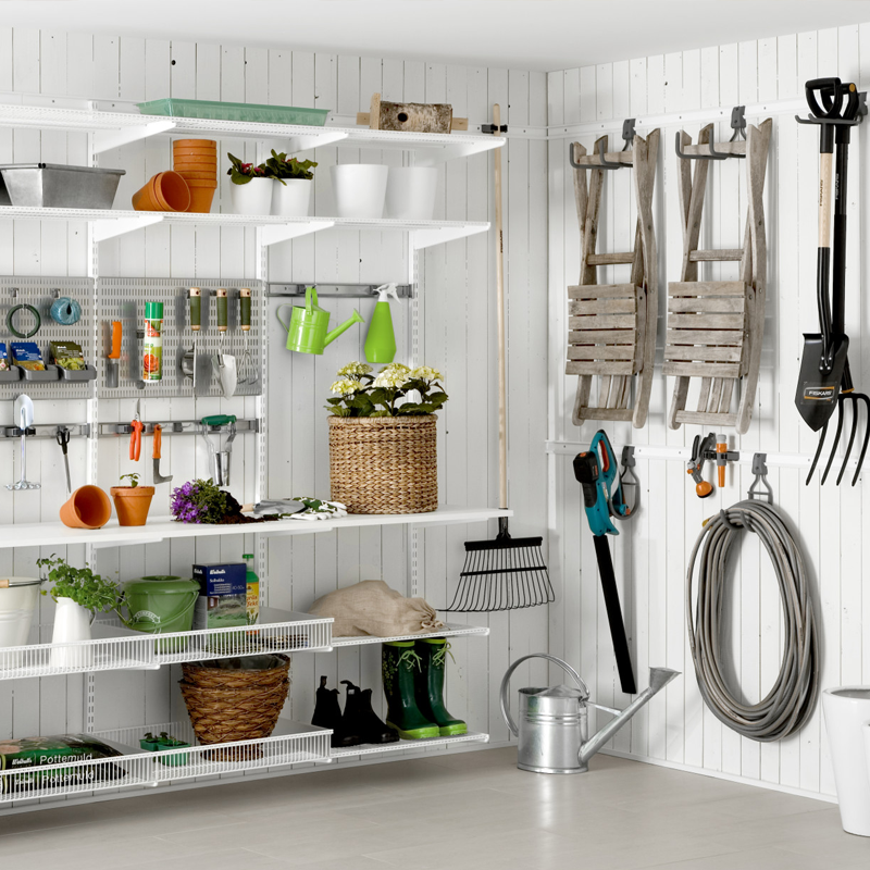 Хранить ручной садовый инвентарь лучше в сухом закрытом помещении, чтобы избежать появление ржавчины и морозных повреждений. Например, на полках в сарае.
