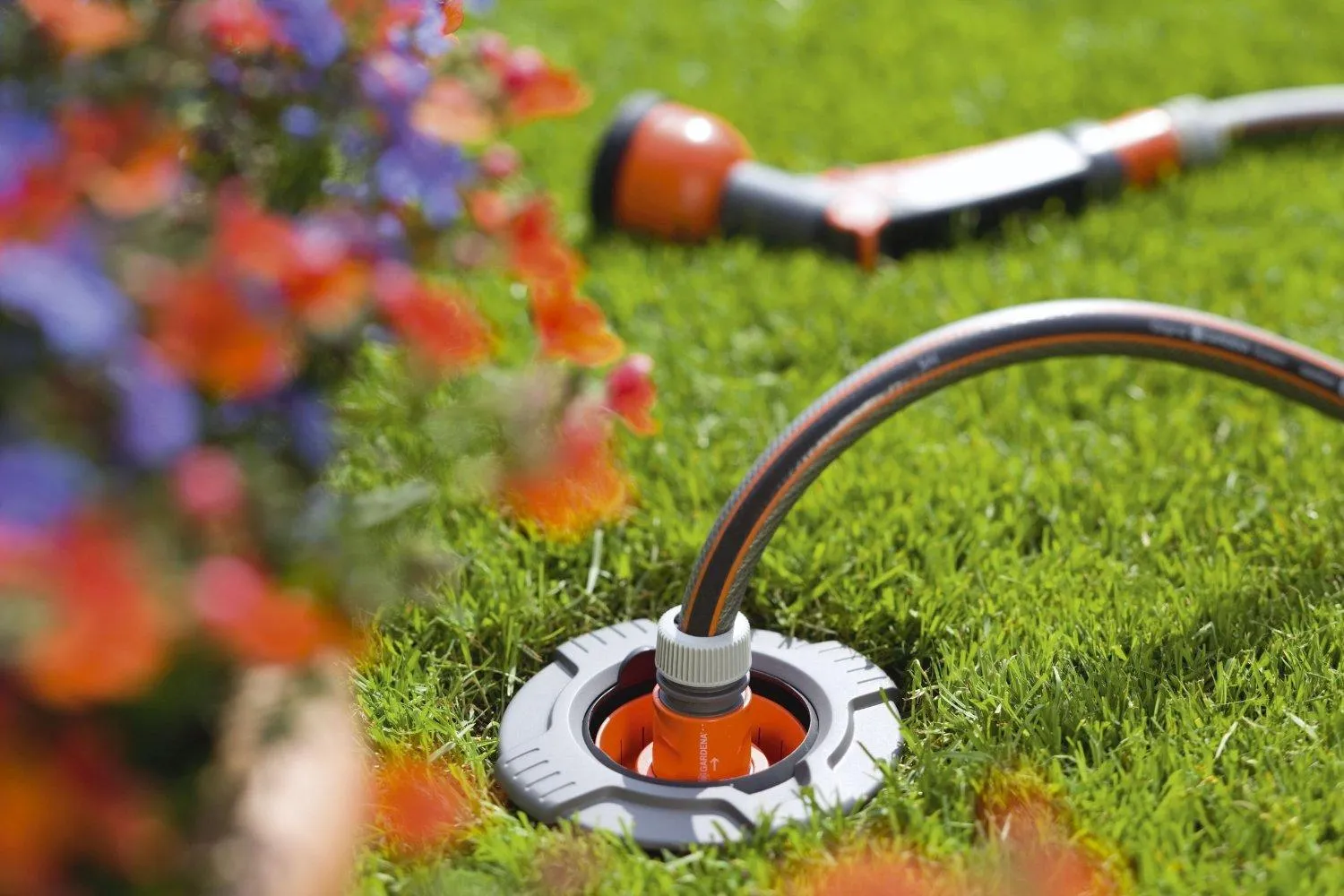 Точка забора воды. Устанавливается под землей. Штуцер для забора воды с автостопом. Для подключения подходит любой коннектор базовой системы Gardena. К колонке вода поступает по магистральному шлангу Gardena. После подсоединения садового шланга к водозаборной колонке можно сразу же начинать полив. Если шланг случайно отсоединится во время работы, вода автоматически перестает подаваться. Колонка защищена пластиковой выдвижной крышкой, которая защищает колонку от попадания внутрь мусора. Съемный фильтр защищает колонку от инородных частиц при открытой крышке. Наружная резьба устройства 3/4 дюйма.