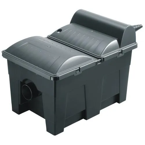 - Простое удаление крупных загрязнений Благодаря раздельным каналам для воды и загрязнений крупные загрязнения можно легко удалить из фильтра для пруда.
