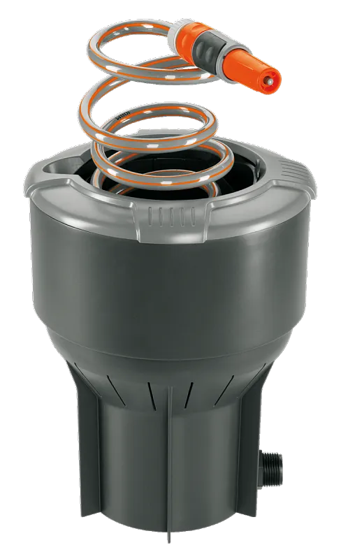 Точка забора воды, устанавливаемая под землей. Идет в комплекте со спиральным клапаном длиной 10 м и наконечником для полива. На конце шланга установлен автостоп, который позволяет менять насадки, не оснанавливая подачу воды на самой колонке (подача воды сама автоматически прекращается при отсоединении насадки или шланга). Спиральный шланг хранится внутри колонки. Специальная выдвижная крышка защищает внутренние узлы устройства от попадания мусора. Наружная резьба колонки 1 дюйм.