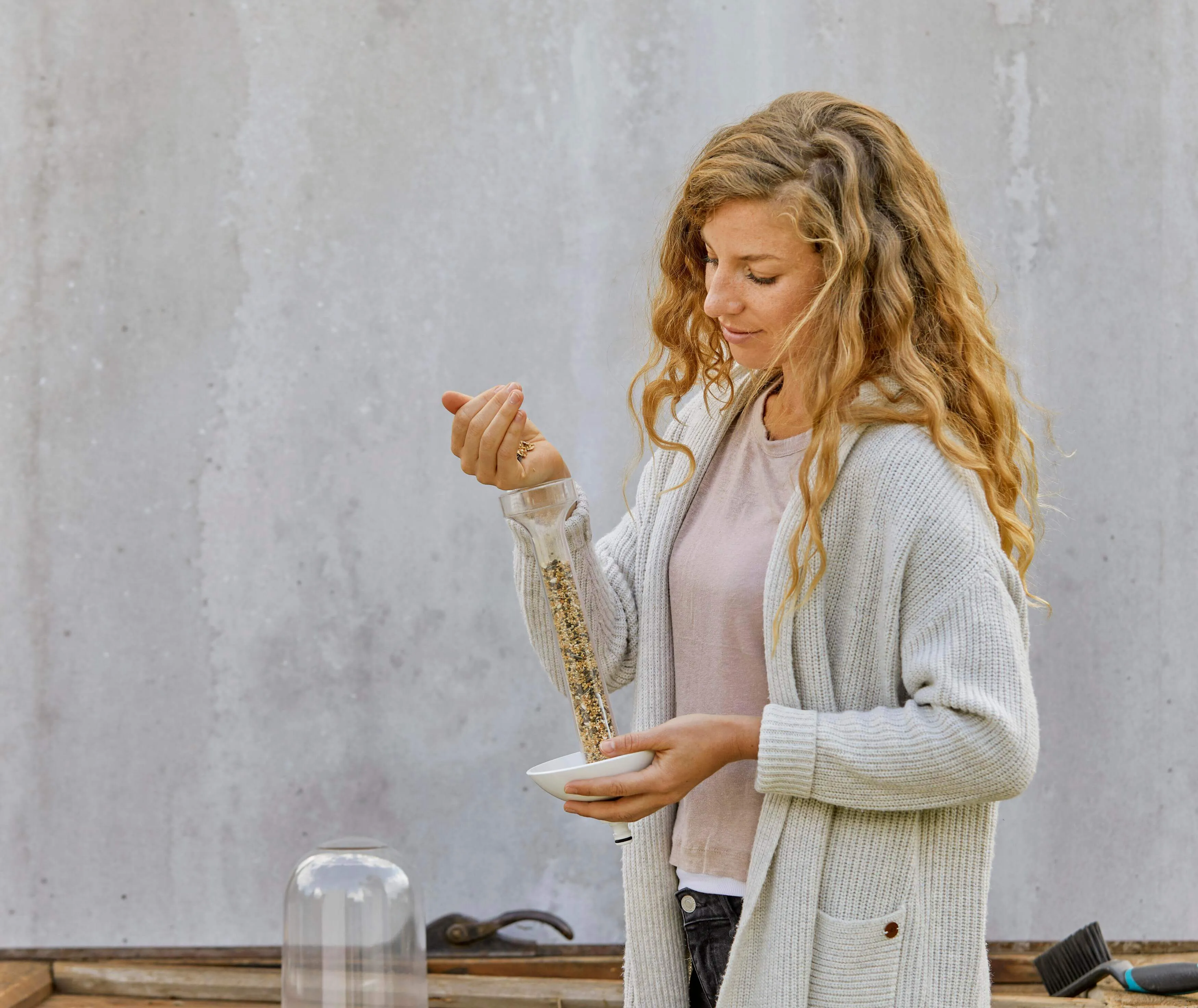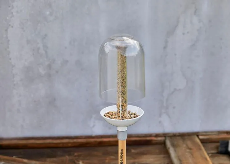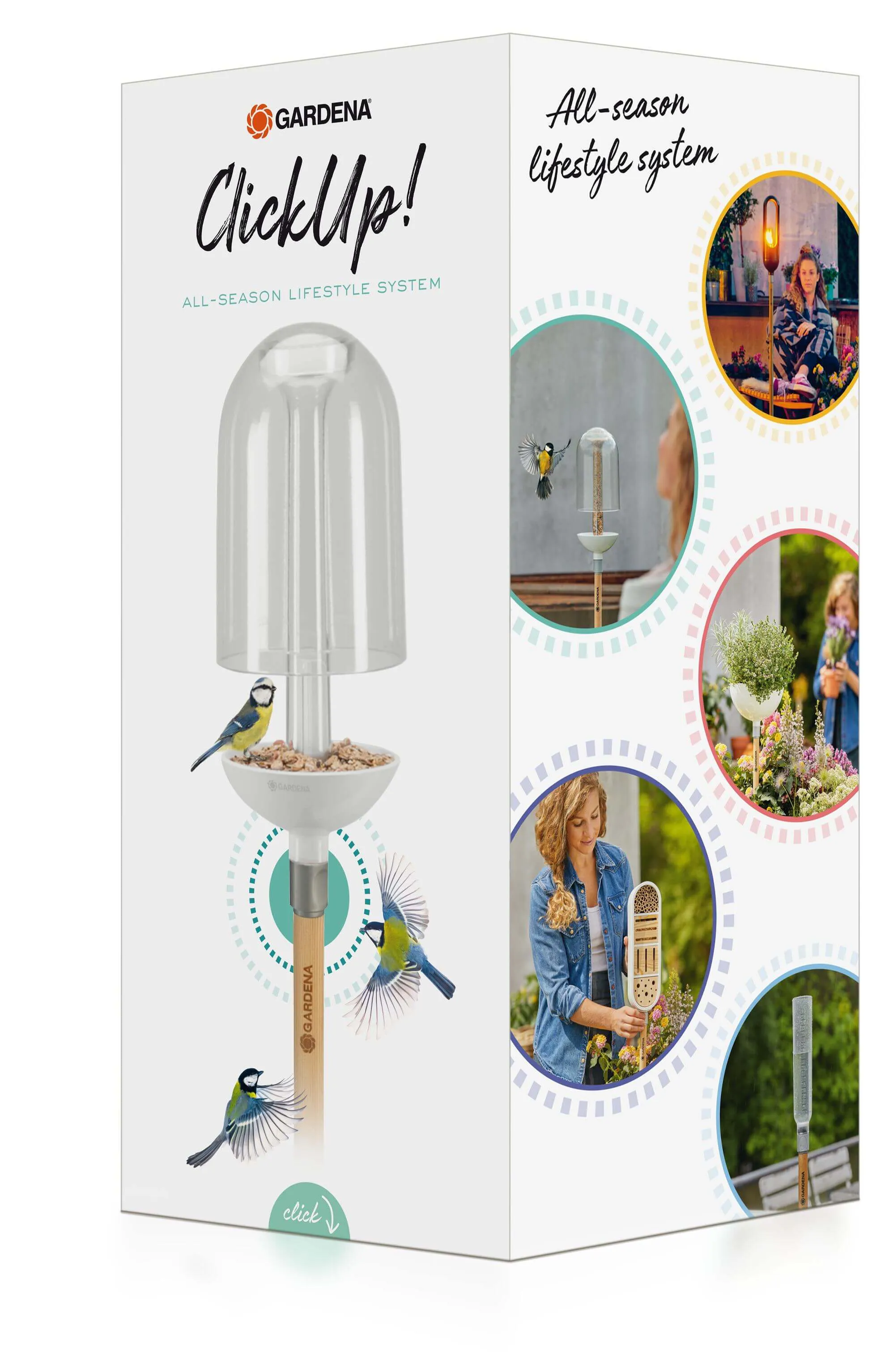 Кормушка для птиц Gardena ClickUp! работает с рукояткой ClickUp! и подключается одним щелчком.