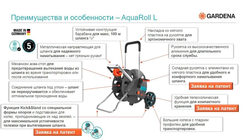 до 100м шланга 13мм с направляющей и усиленными колесами